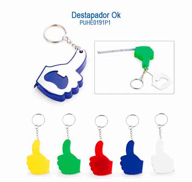 Destapador llavero en forma de mano (OK), cinta métrica metálica de 1 metro / 39 pulgadas de varios colores.